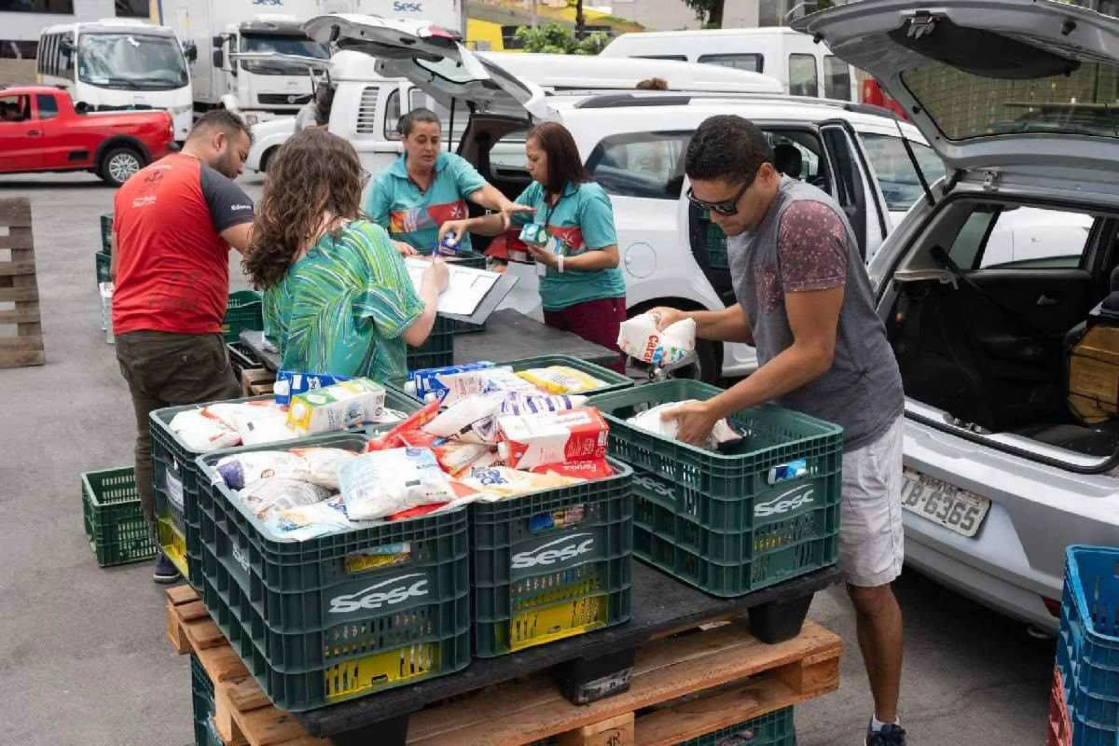 Equipe do Sincovaga MG participa da entrega de 1420 cestas básicas para instituições sociais cadastradas no programa Sesc Mesa Brasil.